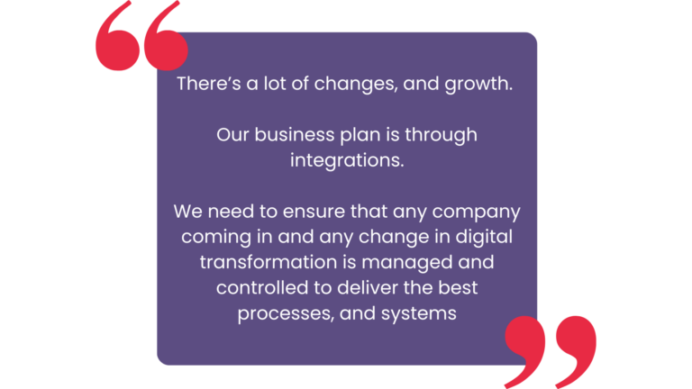 “There’s a lot of changes, a lot of growth, our business plan is through integrations so we need to ensure that any company coming in, any change in digital transformation is managed, controlled, and we deliver the best processes and systems.”